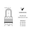 50mm Excell™ laminated steel padlock - Octagonal boron carbide shackle, 9mm diameter - 4-pin tumbler cylinder - dual ball bearing locking