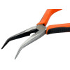 Bahco Bent Snipe Nose Pliers with semi-circular shaped jaws and serrated contact surfaces. The cutting edge is suitable for severing soft material such as copper and plastic insulated wire.